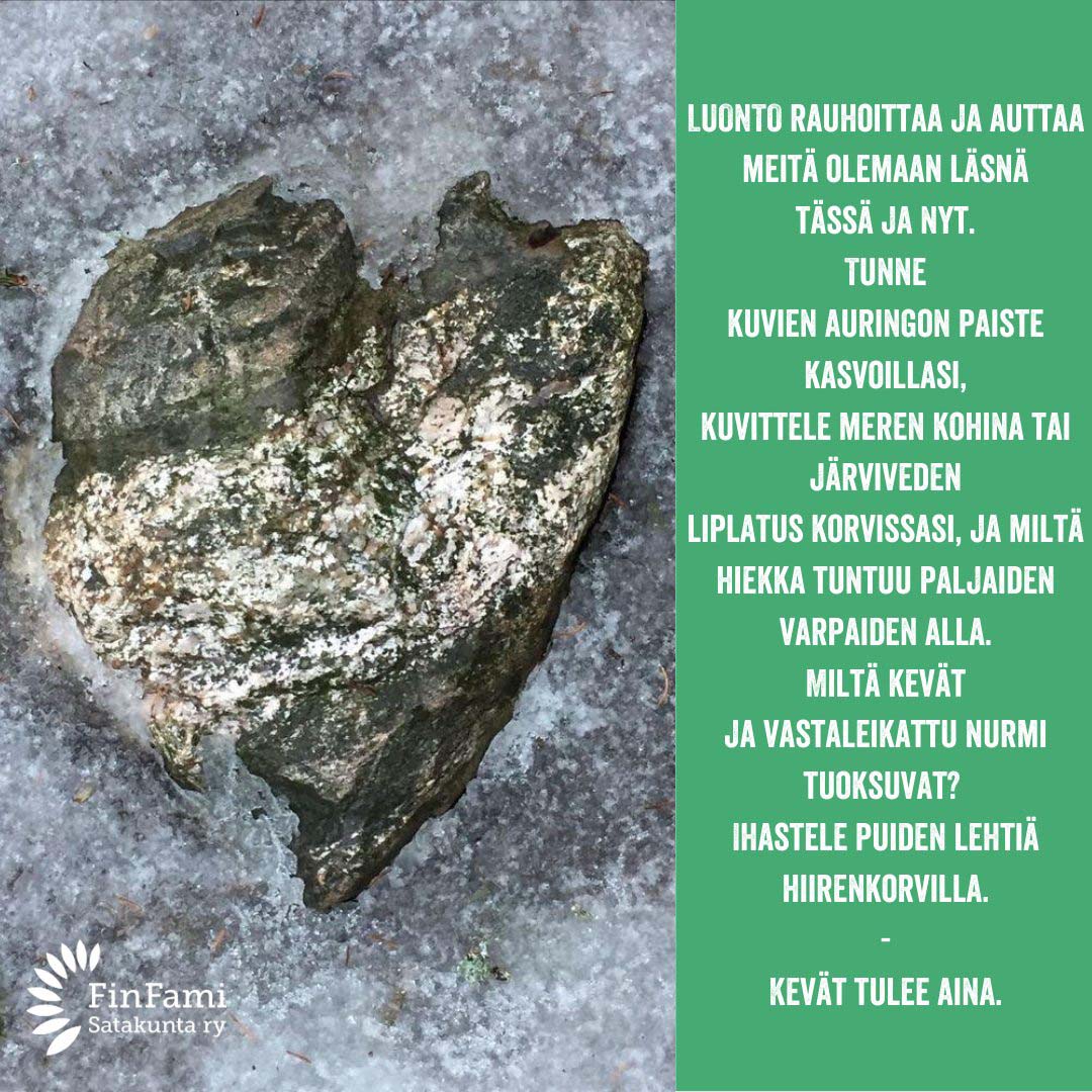 Luonto rauhoittaa ja auttaa meitä olemaan läsnä. Luonto auttaa palautumaan stressistä.